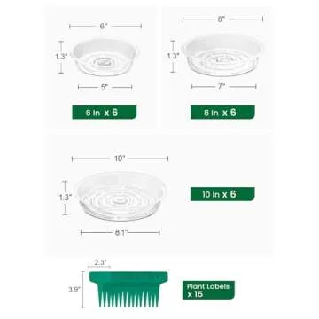 GROWNEER 15 Pack of 6, 8, 10 Inches Clear Plant Saucers Flower Pot Trays, with 15 Pcs Plant Labels, Plastic Plant Drip Trays for Indoor Outdoor Plants Garden, 5pcs of Each Size