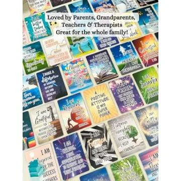 Growth Mindset Positive Affirmation Cards, 54 Affirmations, 150+ Inspiring Questions, Glossy Coated Cards with Storage Box, Meaningful Gift, Loved by Teachers, Therapists and Parents