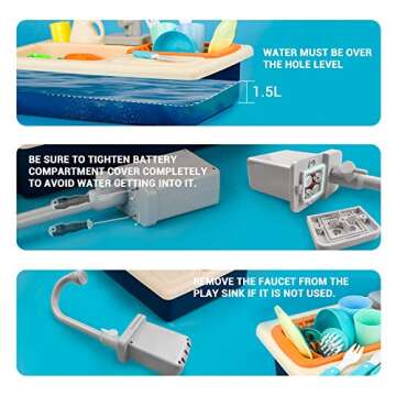GrowthPic Play Kitchen Sink Toys, Pretend Play Sink with Running Water, Kids Kitchen Accessories with Utensils, Color Changing Toys in Water, Apron and Cutting Play Food for Girls Boys and Toddlers