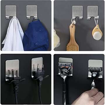 GRUTTI Razor Holder Shaver Hook Hanger Stand, Multi Purpose Self Adhesive Storage Hook, 2 Pack Heavy Duty Razor Holder for Shower Shaving Razor, Keys, Kitchen Utensils, Towel (2-Pack)