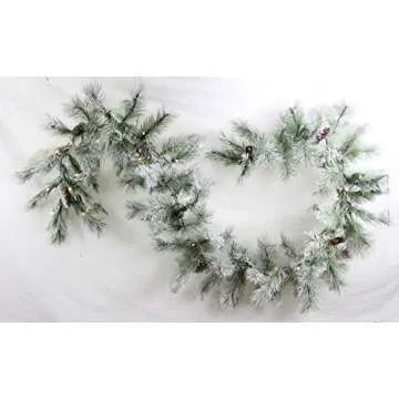 Show moreTransform your home into a winter wonderland with the GSC 9 ft. Lighted Snow Pine Flocked Garland. This stunning garland is designed to bring the beauty of nature indoors, featuring a realistic snow-dusted finish that mimics freshly fallen snow. Adorned with 85 lush tips and beautifully crafted artificial pinecones, this garland adds a touch of elegance and charm to any space. It's perfect for draping over mantels, wrapping around staircases, or enhancing your holiday displays. With its integrated warm white LED lights, you can effortlessly create a cozy and inviting atmosphere, whether during the holidays or throughout the winter months.