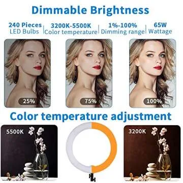 GSKAIWEN 18inch 65W LED Makeup Ring Light with Mirror for Eyebrow Tattoo Light Lash Lamp Beauty Light Eyelash Extension Lamp Studio Video Photography Light with Tripod Phone Holder Mirror and Bag