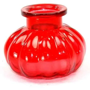 features an elegant Crimson Red glass vase that