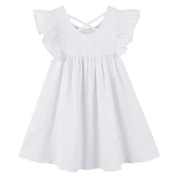 GSVIBK Baby Girls Linen Cotton Flutter Sleeve Dress for Toddlers - Classic & Cute