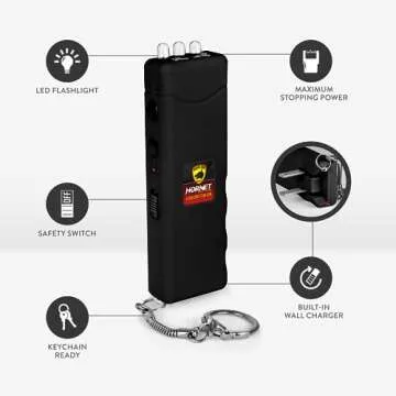 This innovative self-defense solution features a built-in LED flashlight, ensuring that you can navigate low-light environments with ease. Whether you need to illuminate dark parking lots or find your keys at night, this stun gun doubles as a practical flashlight. It's evident that the Guard Dog Hornet is designed for those who seek both protection and everyday versatility.