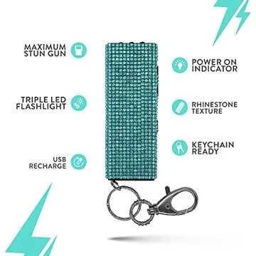 Show moreIntroducing the Guard Dog Security Mini Stun Gun Keychain—the perfect combination of protection and style! Designed with safety in mind, this exclusive Bling series mini stun gun is not just a powerful self-defense device, but also an eye-catching accessory. Dripping with accent jewels, it adds a touch of glamour while being incredibly functional. Weighing just ounces, this compact device comfortably fits in the palm of your hand or slips effortlessly into your purse or pocket. No more sacrificing style for safety; with the Mini Stun Gun, you can carry confidence in chic fashion!