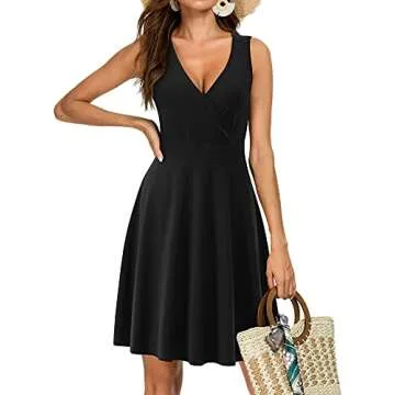 GUBERRY Womens Wrap V Neck Dress Sleeveless Cotton Flare Midi Funeral Graduation Dress(Black,Medium)
