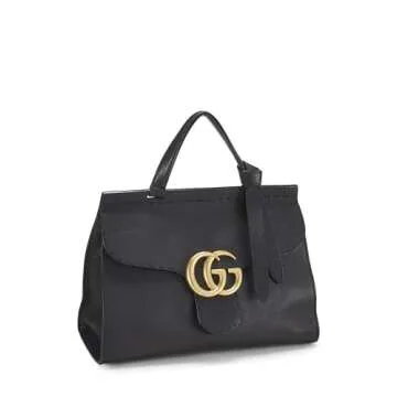 Show moreDiscover timeless elegance with the Gucci Pre-Loved Black Leather GG Marmont Top Handle Flap Bag, a luxurious accessory designed to elevate your style. Crafted in Italy, this exquisite bag features a rich black leather exterior that exudes sophistication. Its pre-loved condition is rated as excellent, showcasing only faint discoloration and pilling on the interior canvas lining, preserving its classic allure while adding a touch of history. With dimensions of 12" (30 cm) in length, 10" (25 cm) in height, and a depth of 5" (12 cm), this compact yet spacious handbag is strategically designed for both function and fashion.