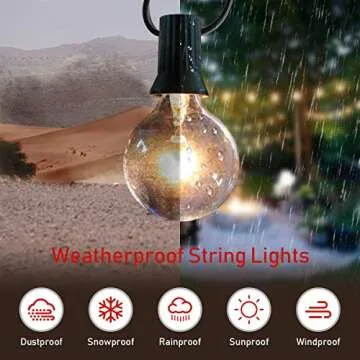 Show moreIlluminate your outdoor spaces like never before with the GUDDL Outdoor String Lights. Spanning a generous 25 feet and featuring a stunning total of 27 G40 bulbs (including two spare bulbs), these lights are designed to create a captivating atmosphere for your patio, garden, or any outdoor setting. Crafted with state-of-the-art waterproof technology, these string lights are built to withstand the elements, from extreme heat to the chill of winter, allowing you to keep your outdoor ambiance glowing all year round. Their enchanting warm white light creates a welcoming vibe, whether you're hosting an intimate dinner or brightening up your backyard celebrations.