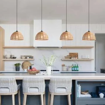 Show more Illuminate your home with the enchanting Gudicati Hand Woven Rattan Pendant Light Fixture set, a stunning combination of vintage farmhouse style and modern bohemian flair. These exquisite pendant lights, crafted from luxurious double-layered rattan, effortlessly merge function with aesthetics. Measuring 9.84 inches in diameter and 5.52 inches in height, they are thoughtfully sized to complement various spaces without overwhelming your decor. Perfect for kitchen islands, dining rooms, or cozy reading corners, these lights create a warm ambiance with their soft, diffuse glow.