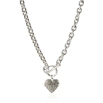 GUESS Women's Silver Toggle Logo Charm Necklace - Stylish & Chic