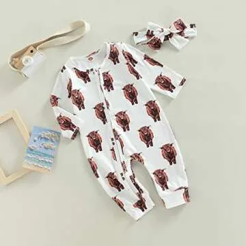 Show more Introducing the adorable Gueuusu Western Newborn Baby Boy Girl Cow Print Romper, the perfect outfit for your little one this fall and winter season! Crafted from soft, breathable fabric, this stylish long-sleeve jumpsuit effortlessly combines comfort and charm. The cute cow print design adds a fun and trendy flair, making it a delightful outfit choice for both boys and girls. Featuring a cozy crewneck and easy snap closures, dressing your baby will be a breeze. Designed for infants aged 12-18 months, this one-piece bodysuit is sure to keep your baby snug and fashionable during the chilly months.