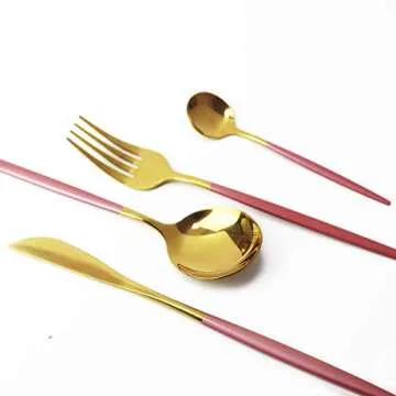 Gugrida 24-Piece Silverware Set - 18/10 Stainless Steel Reusable Utensils Forks Spoons Knives Set, Mirror Polished Cutlery Flatware Set, Great for Family Gatherings & Daily Use (6 set, Pink Handle)