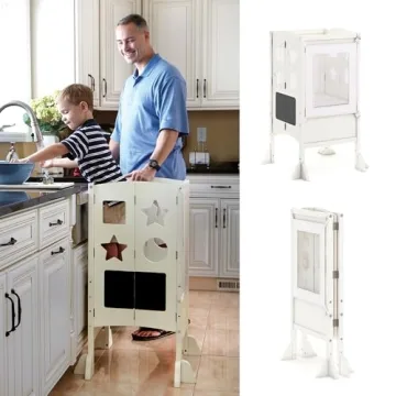 Show more Introducing the innovative Guidecraft Kitchen Helper, a foldable toddler tower designed to empower your little ones in the kitchen! This versatile and lightweight kitchen helper is perfect for children aged 18 months and up, enabling them to participate in cooking and kitchen activities safely. With its unique foldable design, the Kitchen Helper can be easily stored when not in use, making it a practical addition to any home. Available in three stylish designs and a variety of colors, it seamlessly blends into any kitchen decor.