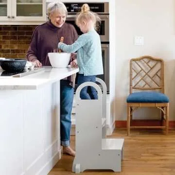 Guidecraft High-Rise Step-Up - Gray: Counter Height Wooden Kitchen and Bathroom Step Stool for Kids and Adults - Quality Furniture