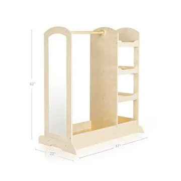 Show more Unleash Your Child's Imagination with the Guidecraft See and Store Dress-up Center! This beautifully crafted armoire is designed specifically for children, allowing them to create their own little world of dress-up fun. Perfectly sized for any bedroom or playroom, this spacious unit features smooth, rounded edges that not only ensure safety but also complement various decor styles. The full-length inset Mylar mirror invites your little ones to admire their outfits as they engage in imaginative play, fostering creativity and confidence.