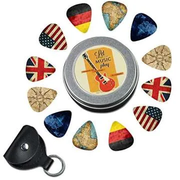Guitar Picks - Cheliz 12 Medium Gauge Celluloid Guitar Picks In a Box W/Picks Holder. Unique Guitar Gift For Bass, Electric & Acoustic Guitars (Flag and Map)