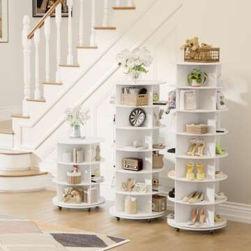 Gujiam 7-Tier Rotating Shoe Rack Tower 360 with Wheels, 66.9in Spinning Shoe Rack, Revolving Shoe Rack, Shoe Carousel Closet Organizer, Free Standing Shoe Rack for Entryway Living Room Hallway White