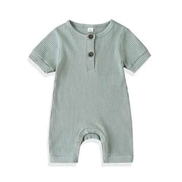 GuliriFei Baby Girls Boy Ribbed Romper Short Sleeve One Piece Jumpsuit Solid Color Romper (6-9 Months, B Light Green)