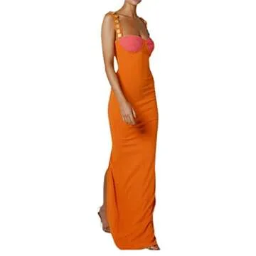 GuliriFei Women Sexy Cut Out Bodycon Maxi Dress Sleeveless Color Block Slip Dress Elegant Long Cami Dresses Evening Party
