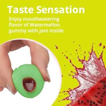 Show more Experience a delightful burst of flavor with our exquisite watermelon jelly-filled gummies! These delectable candies are not just a treat, but a vivid adventure for your taste buds. As you unwrap each piece, you'll be greeted with a captivating watermelon flavor that dances on your tongue and leaves you craving more. Manufactured by a brand known for its attention to detail and quality, these gummies boast a luscious watermelon jam filling that embodies the essence of the summer fruit.