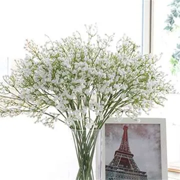 Show moreTransform your home or event spaces into breathtaking displays with the Gumolutin 9Pcs Long Stem Artificial Baby Breath Flowers. Meticulously crafted from premium PU material, these flowers are designed to replicate the authentic look and feel of real baby breath, featuring soft petals and intricate details that will have your guests second-guessing their authenticity. Measuring 21 inches in length, each flower comes with approximately 90 delicate buds, making them the perfect choice for elegant floral arrangements, striking centerpieces, and versatile decor that suits any occasion.