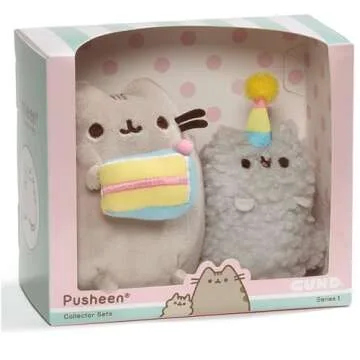 Gund Pusheen and Stormy Birthday Set Plush, Collectible Stuffed Animals for Ages 8 and Up, Gray, 6.5”