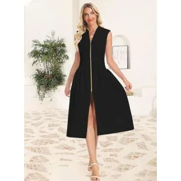 Show more Introducing the **GUNEST Womens Black Dress** – a stunning casual midi dress designed for the modern woman who embodies style and comfort. Made with meticulous attention to detail, this dress features a **Deep V Neck** and **Cap Sleeves** that beautifully accentuate your features, while the **Smocked Elastic High Waist** creates a flattering silhouette that complements any body shape. The unique **Front Zipper** not only provides versatility in styling but also adds a touch of edgy sophistication. Perfect for those hot summer days, its **Flowy Split Design** ensures easy movement, making it an essential addition to your wardrobe.