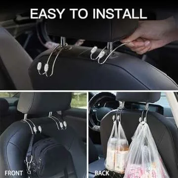 Guoord 【2024 Upgraded】 Car Headrest Hook Decorations, 2 Pcs Bling Purse Hook Hangers, Stainless Hooks Car Hangers and Durable Backseat Holder, Storage Universal for SUV Truck Vehicle(White)