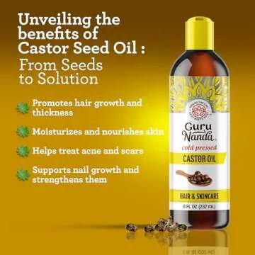GuruNanda Castor Oil (8 Fl oz), 100% Pure, Cold Pressed & Hexane-Free, Hydrating Carrier Oil, Natural Castor Oil for Hair, Eyebrows & Eyelashes Growth