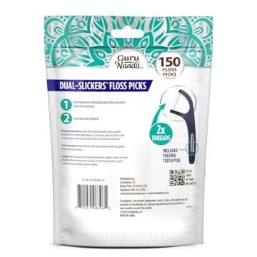 GuruNanda Dual Slickers Floss Picks - Double Threaded Dyneema Dental Floss with Foldable Toothpick for Effective Plaque Removal - Unflavored- 150 Ct