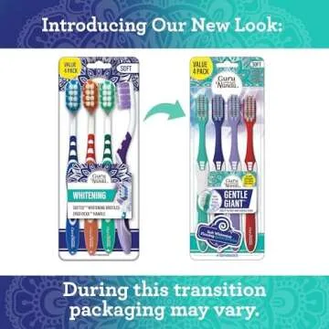GuruNanda Gentle Giant Toothbrush with Dual Action Flossing Spiral Bristles, Non-Slip Ergo Dexa Grip, Helps in Teeth Whitening, BPA Free, (4 Count)