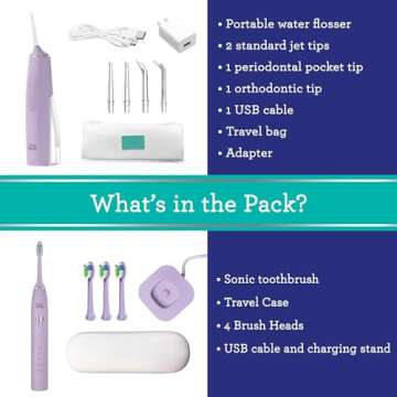 GuruNanda Lion & Lamb Kit (Lavender), Portable Water Flosser (300ml) with 4 Jet Tips, 5000 mAH Rechargeable Sonic Toothbrush with 4 Brush Heads & More