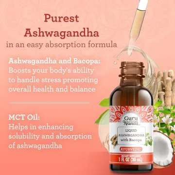 GuruNanda Liquid Ashwagandha with Bacopa (1 Fl Oz) - Natural Dietary Supplement- Liquid Extract Drops - for Men & Women- Vegan & Alcohol-Free - Aids in Immune, Focus & Relaxation Support