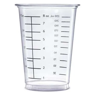Show more Introducing the GUSTO Multipurpose Disposable Plastic Measuring Cups – the perfect companion for both artists and home cooks alike! With a generous pack of 50 cups, each holding 10oz, these cups have been meticulously designed to ensure precision in measuring and mixing, taking your creative projects and culinary endeavors to new heights. Made from durable, clear plastic, these cups are not only uncrushable but also allow you to see just how much you have left and what you're mixing as you go. Forget about messy clean-ups; with these cups, you can embrace hassle-free creativity!