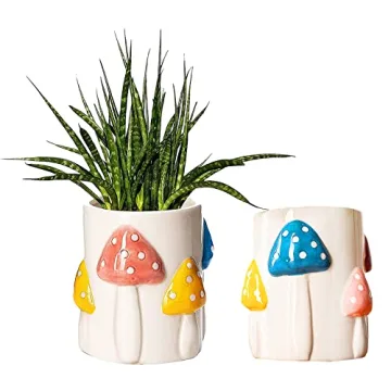 GUTE Colorful Mushrooms Planters - Whimsical Ceramic Planter for Indoor Plants