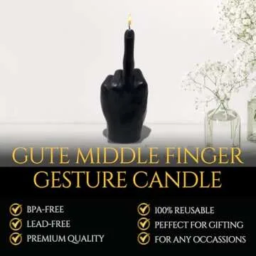 Show moreIntroducing the GUTE Middle Finger Candle, a unique and cheeky addition to your home decor that transcends traditional gift-giving. Perfect for those with a sense of humor and a penchant for novelty, this candle is not just a source of light; it’s a statement piece. Crafted from 100% vegetable wax, its burn time extends to an impressive 10-15 hours, allowing you to enjoy both the glow and the laugh it brings. The sleek black design of the candle, molded in the shape of a middle finger, captures attention and evokes laughter, making it the ideal gift for friends, family, or coworkers who appreciate a touch of audacity in their lives.