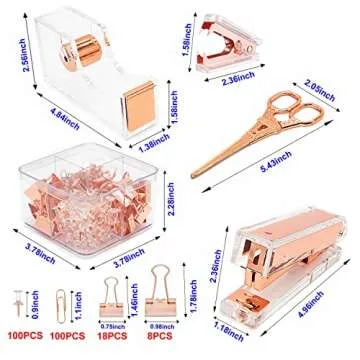 Gutyble Rosegold Office Supplies Set,Package Contains Stapler,Tape Dispenser,Staple Remover,Scissors,Binder Clips,Paper Clips,Push Pins and 1000pcs Staples.Acrylic Office Desk Accessories Kits