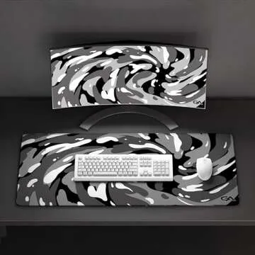 GutzyAiden Swirl XXL Gaming Mouse Pad | 36" x 18" | Hybrid Polyester Fabric Top | Non-Slip Rubber Base | 4mm Thick (Arctic Swirl)
