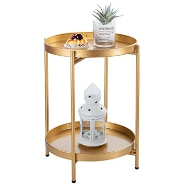 Show moreIntroducing the Guudoo Folding Gold End Table, an exquisite blend of style and functionality designed to enhance any living space. This 2-tier side table boasts a modern chic aesthetic that complements both indoor and outdoor settings effortlessly. Its compact dimensions of 15” D x 20” H make it an outstanding choice for small corners or as a statement piece on your balcony. Not just a pretty face, this table features a removable tray design that allows for easy serving of snacks, drinks, or decorative accents, making every gathering a delight. Crafted from durable metal, the table is built to last, featuring a rust-proof and water-repellent finish that stands up to the elements, ensuring you can enjoy it for years to come.