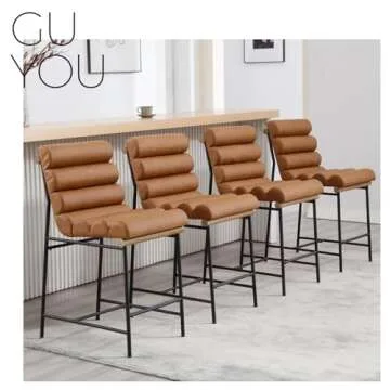 Guyou 25" Modern Upholstered Counter Stools Set of 4, PU Armless Counter Height Chairs Black Metal Legs Stool with Deep Channel Tufted Back and Seat for Kitchen Island Dining Room (Brown Leatherette)