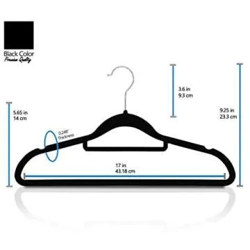 Show moreRevamp your wardrobe with the GVTECH Premium Velvet Hangers - a remarkable 50 pack of hangers designed for both functionality and elegance. Crafted with meticulous attention to detail, these hangers measure an ideal 44.5*23.5*0.5 cm and feature a sumptuous velvet surface that not only elevates the look of your closet but also ensures your favorite garments are handled with care. The chic and sophisticated black color easily complements any decor, making it a must-have for fashion enthusiasts and organization aficionados alike.