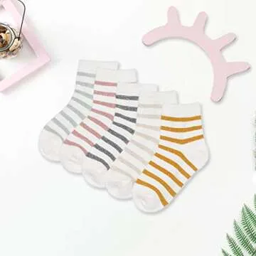 Gwenvenni Kids Cutton Ankle Socks Glitter Striped Crew Socks fo Big Little Girls 5-Pack