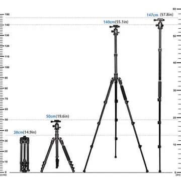 GWNNSH Camera Lightweight Travel Tripod, 58” Detachable Monopod, Aluminum Ball Head Stand 3 X Control Knobs with Calibration, DSLR QR Plate, Level Indicator, Flip Lock Design. Dare to Compare