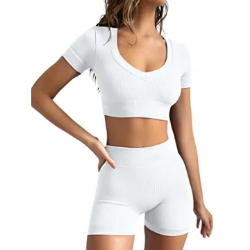 Show moreIntroducing the GXIN Women Workout 2 Piece Outfits Seamless Ribbed Short Sleeve Crop Tops High Waist Running Shorts Exercise Set in stunning white. Crafted from a superior blend of 90% nylon and 10% spandex, this set features a ribbed stretchy fabric designed to replicate your body’s movements effortlessly. The innovative 4-way stretch provides excellent compression, enhances your natural shape, and lifts the buttocks while minimizing muscle vibrations during workouts. This outfit is tailored for all sports enthusiasts, enabling you to exercise with confidence and comfort.
