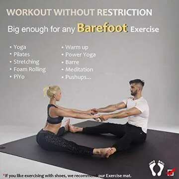 Show more Experience the ultimate in comfort and versatility with our premium workout mat, designed to elevate your home fitness routine to the next level. Whether you're practicing yoga, pilates, or simply stretching, this extra long and wide mat offers the freedom to move without restriction. Crafted with a non-toxic, eco-friendly material, it's safe for both your body and the environment. Our mat features double-sided non-slip surfaces, ensuring stability and grip on any floor surface, whether you're indoors or outdoors.