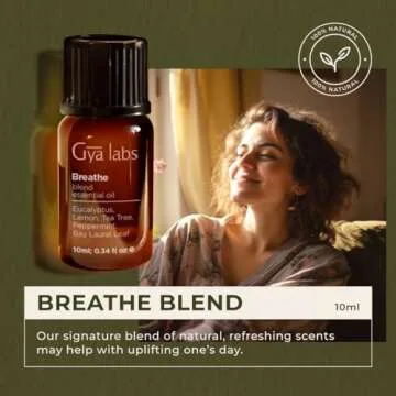 Show more Introducing the Gya Labs Breathe Essential Oil Blends, a refreshing and herbaceous blend specifically formulated to elevate your air quality and invigorate your surroundings. This 100% pure and natural formula combines the cleansing properties of eucalyptus, peppermint, tea tree, lemon, and bay laurel oils, creating the ideal companion for stuffy days or chilly seasons. Just add 1-2 drops to your humidifier or diffuser, and prepare to breathe easy as your space fills with this uplifting, aromatic experience. With each drop, you engage in an effective way to reduce discomfort and promote a lively atmosphere within your home.