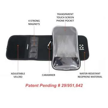 Gym Mate Magnetic Water Bottle Sleeve with see-through phone access. Attaches Magnetically to Metal Surface so Your Bottle is Always Within Reach. Use your phone without taking it out of the pouch.