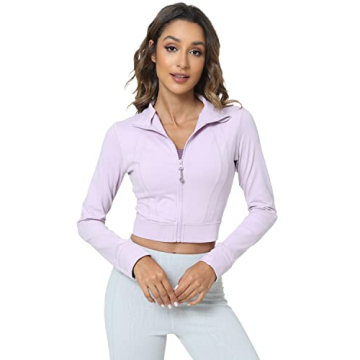 GYM RAINBOW Women's Cropped Full Zip Athletic Jacket - Lightweight Slim Fit with Thumb Holes (Fair Orchid, Small)