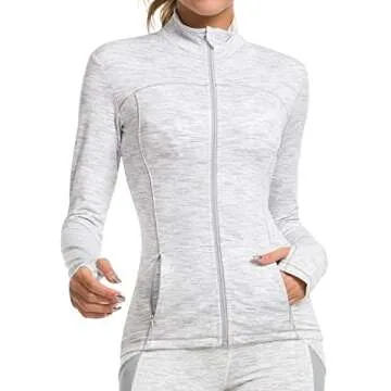 GYM RAINBOW Workout Jackets for Women, Full Zip Slim Fit Lightweight Athletic Running Sports Track Jacket with Pockets(2-White Space dye,Small)